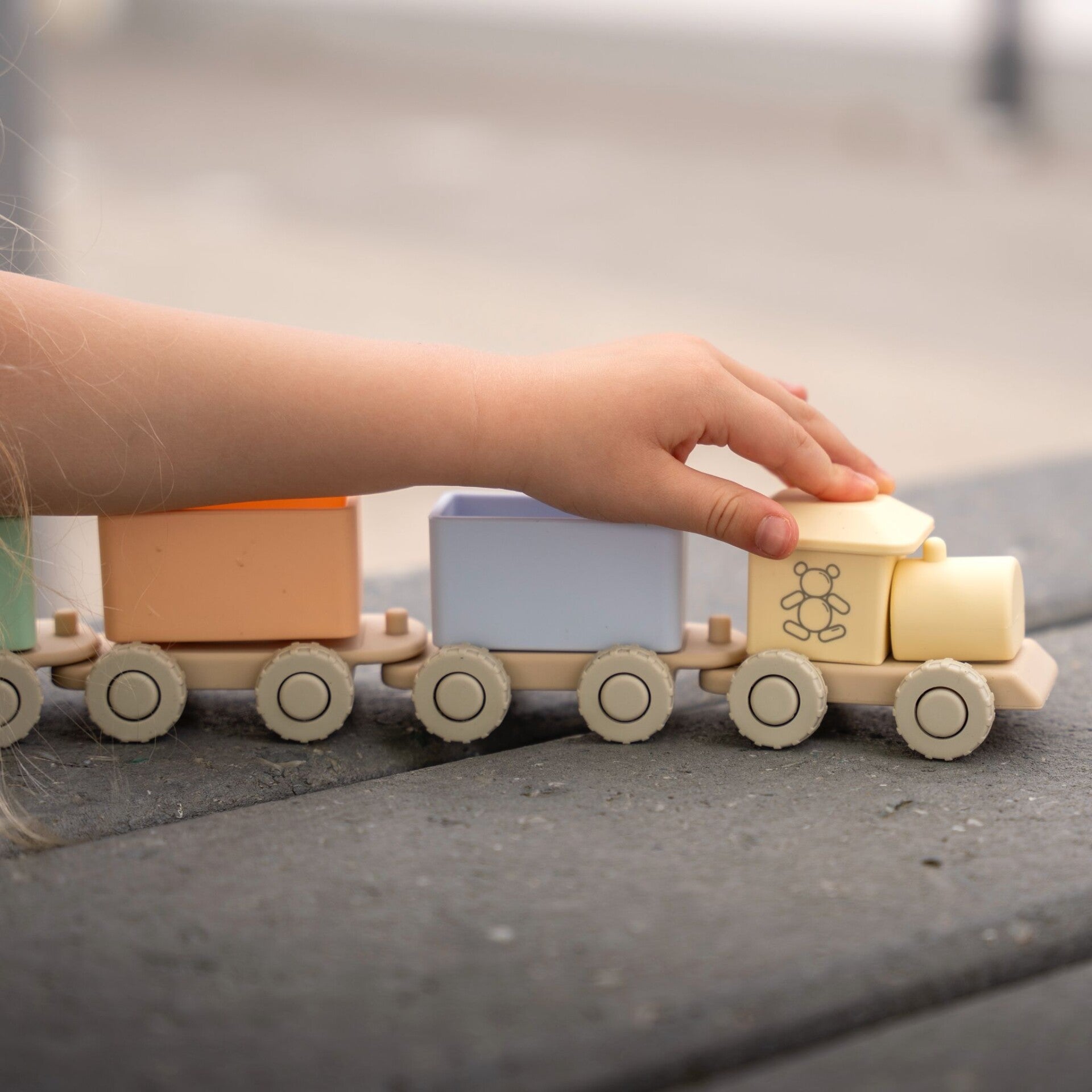 Stap in de wereld van stil speelplezier met onze siliconen treinset, een onderdeel van ons geliefde fluisterspeelgoedassortiment. Deze zachte, soepele trein is perfect voor kleine handjes én gevoelige oortjes. De "Toyama trein" rijdt écht en bijzonder soepel dankzij de stevig bevestigde, draaiende wieltjes. Volledig gemaakt van 100% veilige siliconen, is deze trein ideaal voor kinderen die graag bouwen, ontdekken én bijten.
